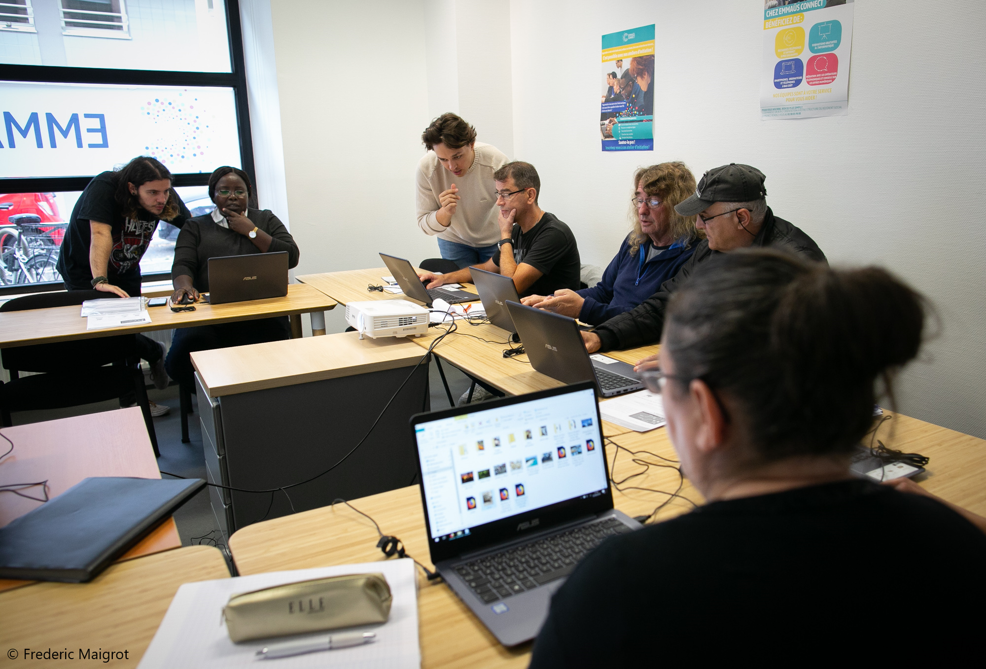 - en accompagnant sur le numérique les publics en difficulté à travers des ateliers gratuits, collectifs et individuels dans nos locaux et dans des structures sociales partenaires ;